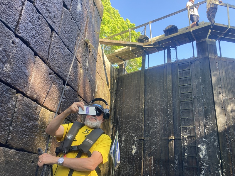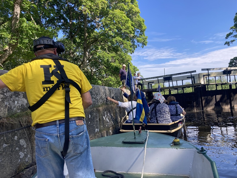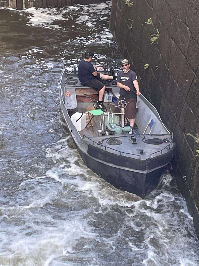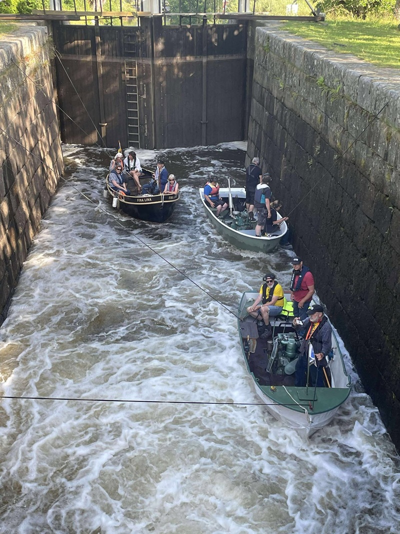 med fyra herrar som efter ett litet stopp åkte nedför kanalen