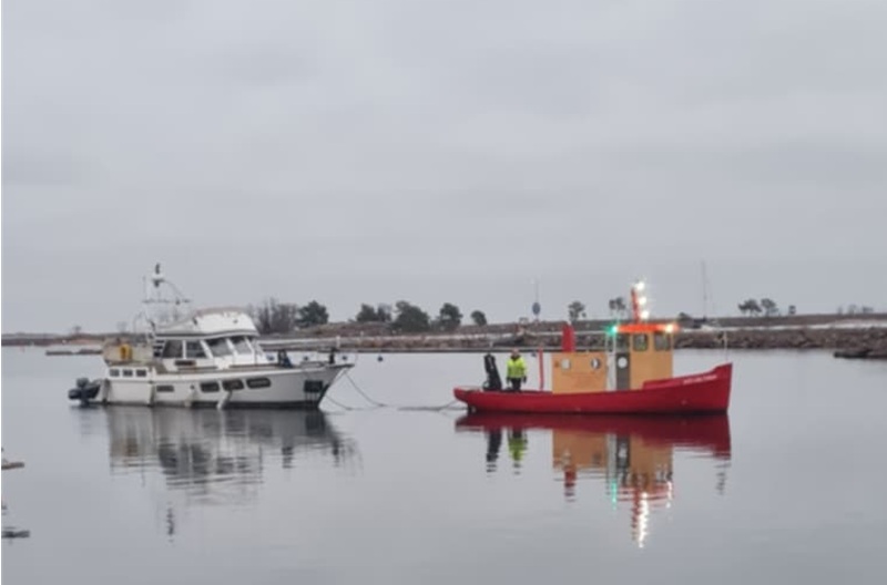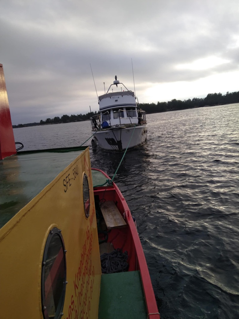 Bärgning av grundstött fritidsbåt. Foto Tobias Svensson sommaren 2025