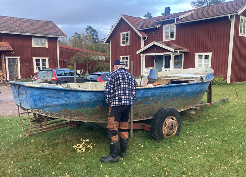 Nu drivs båten av en liten dieselmotor och ratten vhar inte ännu funnits sin lidwallska form. Foto hösten 2010 Jonny Andersson.