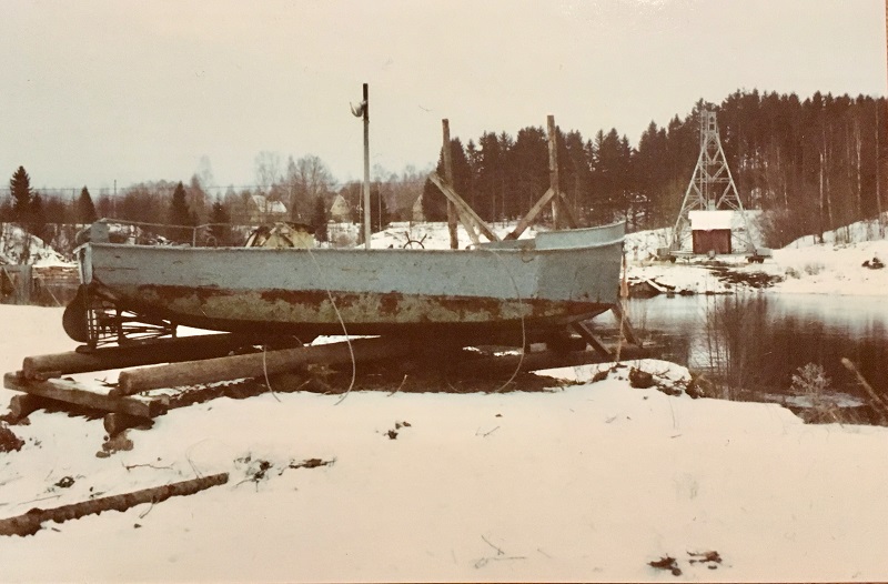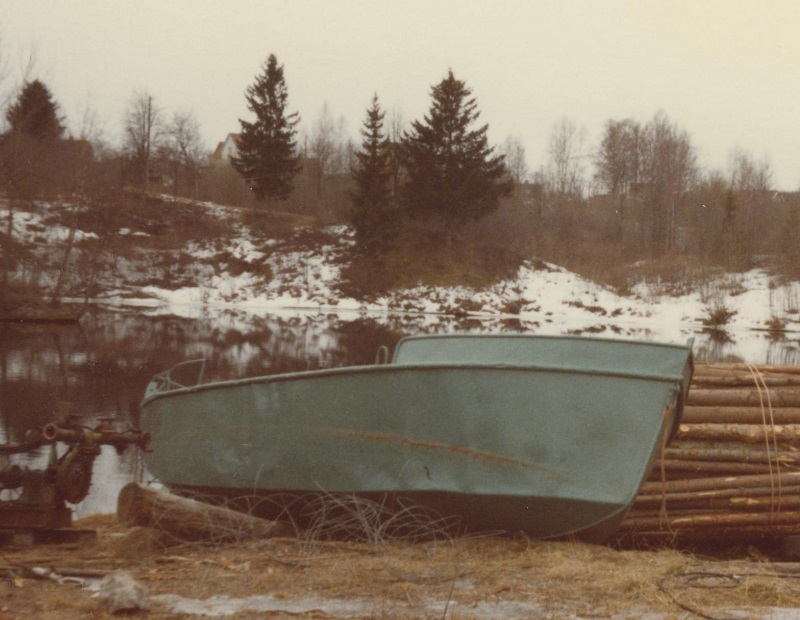 Båten uppdragen för svetsning av botten vid Rottneros bruk. Foto Håkan Larsson Mars 1981