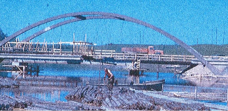 Brobygge över Rottnan vid bruket 1969 sista året det flottades på sjön. Foto från Rottneros arkiv