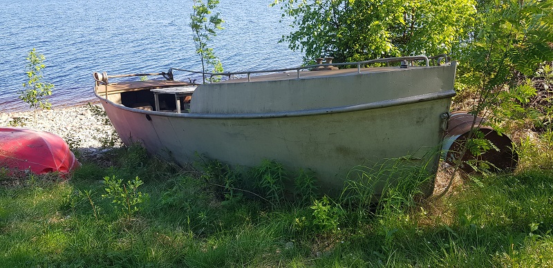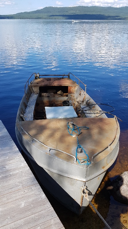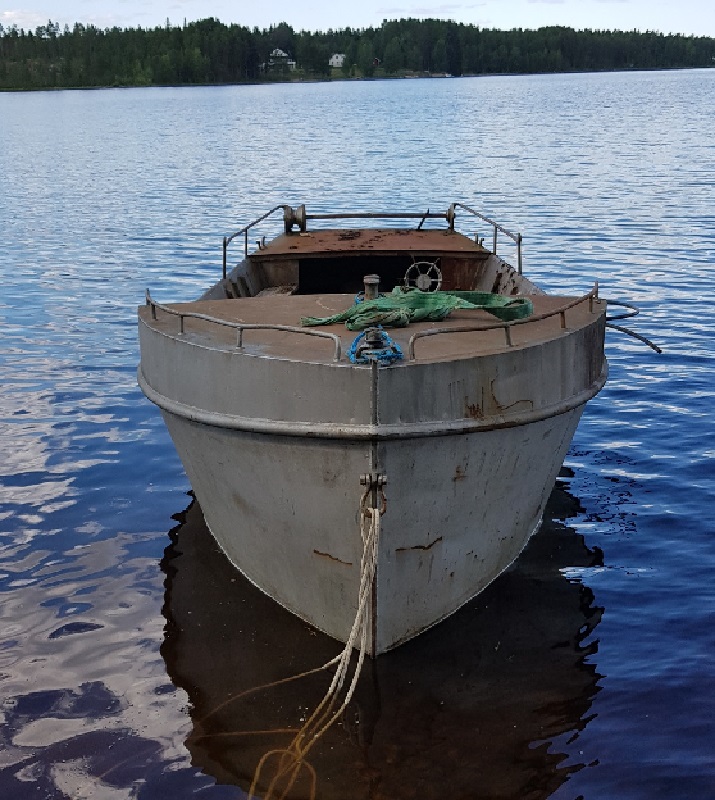 Bästa sättet att få hem båten var att sjösätta och bogsera henne över sjön. Foto Morten Stenseth 2021 07 14