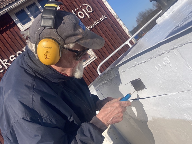 Byte av maskin. Ny tank monterad under akterdäcket Foto Göran Åström