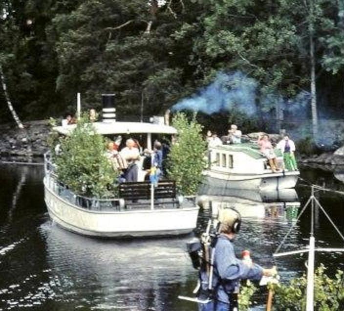I Dalslands kanal vid Töcksfors runt midsommar 1988 ses Lönnö förtöjd vid länsen. I förgrunden en annan bekant - motorvarpbåten Erik - som nu åter trafikerar Siljan. Foto fr lidwallssidans arkiv.
