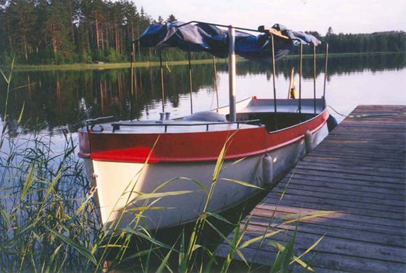 Nykomling på Ojesjön. Fördäcket fortsätter akterut med en förhöjd bordläggning, av Lidwalls kallad skvättbord. Foto red 2001