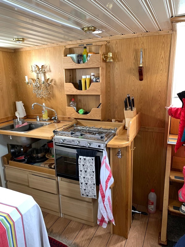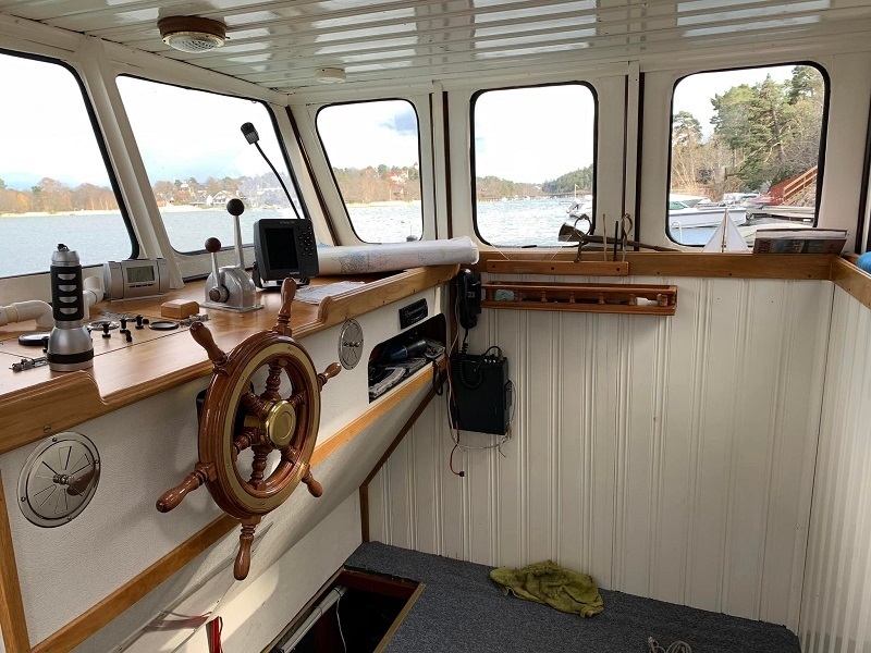 Båten var till salu och så här såg styrhytten ut. Foto Ilona Ek-Asplund 2022 07 10