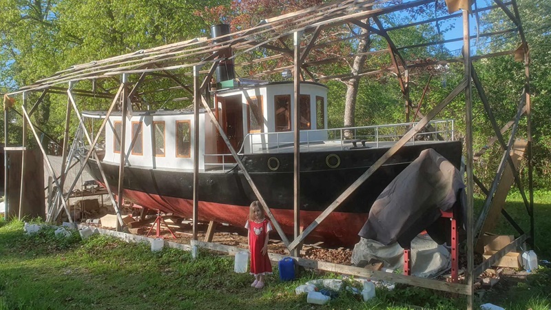 Ottar arbetar vidare. Ny propelleraxel har tillverkats och på denna bild ses hur överbyggnade växer fram. Foto Ottar Magnus 2019 05 08