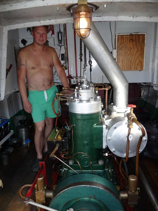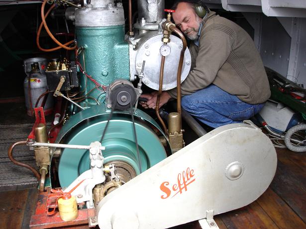 Sefflemotorn som installerades 1953 är ännu i full drift. Här får den en dos av Skepparen/Maskinistens kärlek Foto Mats Lidwall