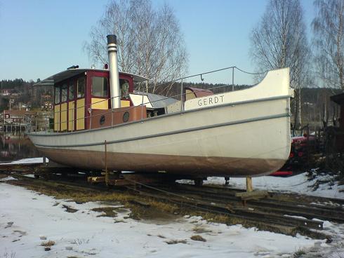 Hon var ursprungligen byggd vid Hernösands Mekaniska Verkstad & Varf. 1904 Längd 13,20 Bredd 3,15 djupgående 1,1 m. Bruttodräktighet ca 13 ton. Maskin en var en ångmaskin av varvets konstruktion på 25 indikerade hkr, ersatt 1953 av en Seffle tändkulemotor typ S210 BFV på 50 hkr. Ursprunghligen var Gerdt byggd som en öppen varpbåt för Nedre Dalälvens Flottningsförening. Kontrakt skrevs med Hernösands MV & Varfs AB den 9 dec. 1903: För Nedre Dalelfvens Flottningsförening, en varpångbåt ”Gerdt” om 58 x 12 x 3 fot, en maskin om 25 Ihk, en panna om 7,84 kg. Leverans: Per jernväg under maj månad. Pris: 19.800 kr.