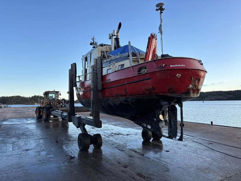 På väg mot Mälaren. Axel skall sjösättas och bogseras till Värmdö där ombyggnationen kommer att forsätta,