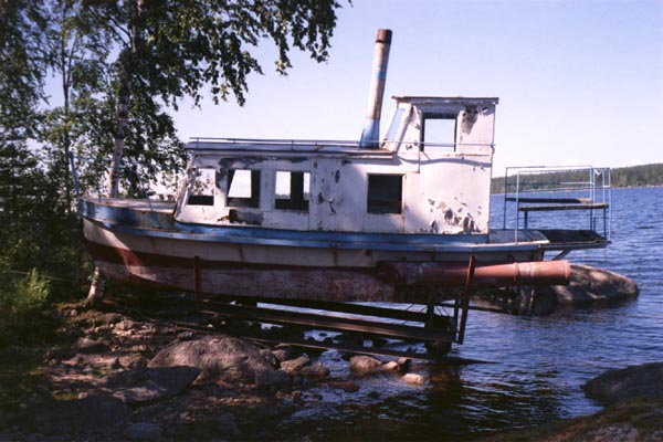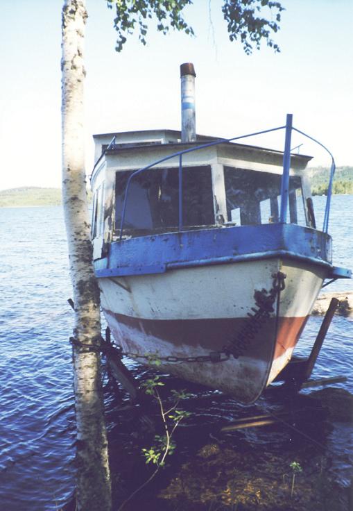 Båten flyttades tillfälligt till Rättvik för att renoveras. Foto red 2006 07 08 .
