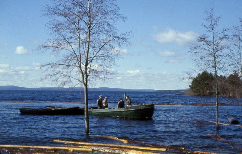 I urspruning skepnad. Högvatten och troligen är man ute efter att ta hand om timmer som rymt från Vikarbysågen. Observera att båten heter Björn och färgsättningen. Friköpt foto från Rättviks Kommuns bildarkiv. Okänd fotograf runt 1965-70