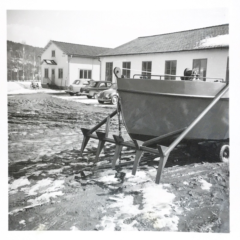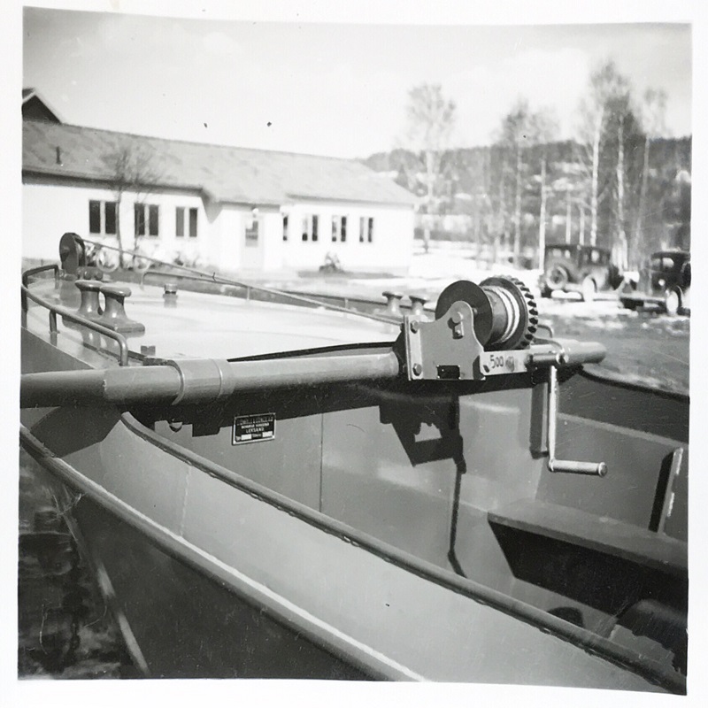 Dubbla pollare. Handmanövrerad lyft med 500 kg lyftkraft. Reprofoto red. i Lidwalls samling Leksands Lokalhistoriska arkiv troligen våren 1956