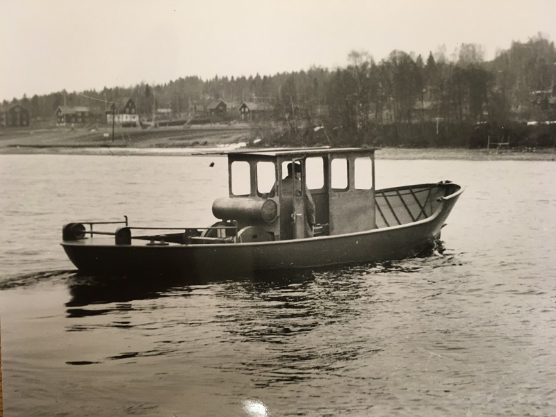 Det finns ett antal provkörningsbilder på båten tagna en vårdag på Österdalälven. Skrovet är målat men inte hytten som även saknade rutor. Kunden väntade ivrigt på leveransen och verkstaden prioriterade praktiska prov framför målning av styrhytten! Det är lågt vatten i älven varför tidpunken är viktig för idenifieringen av båten och att det är den första båten av typen BV 12 R med rund akter. Även bränsletankens placering har vi beaktat vid identifieringen.