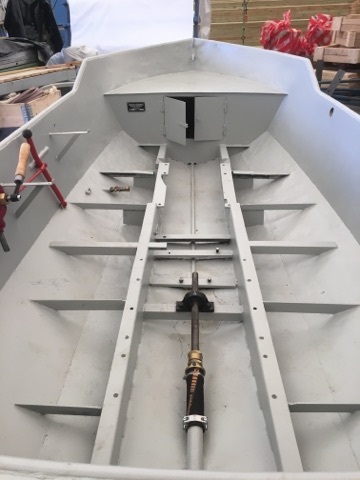 Arbete går raskt framåt och efterlysningen om en Sefflemotor på 8- 5 hkr går ut. Notera spakstyrningen. Foto Rune Strandhaug 2016