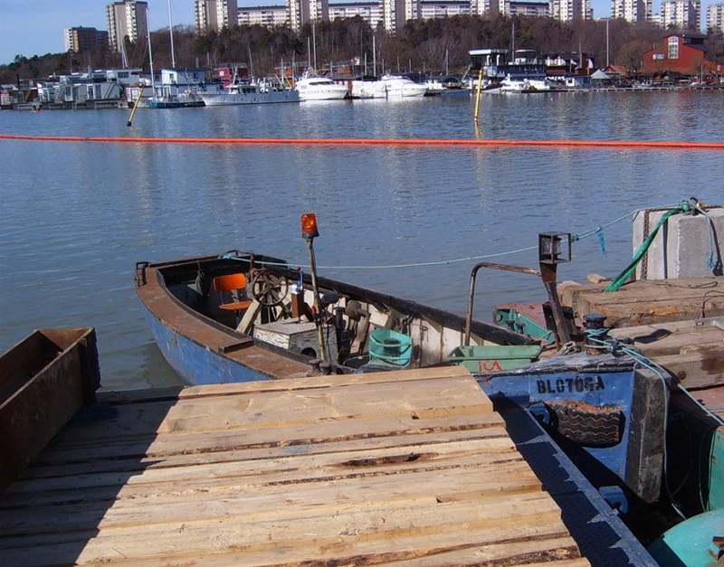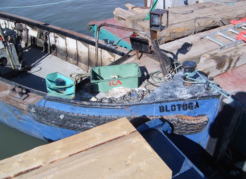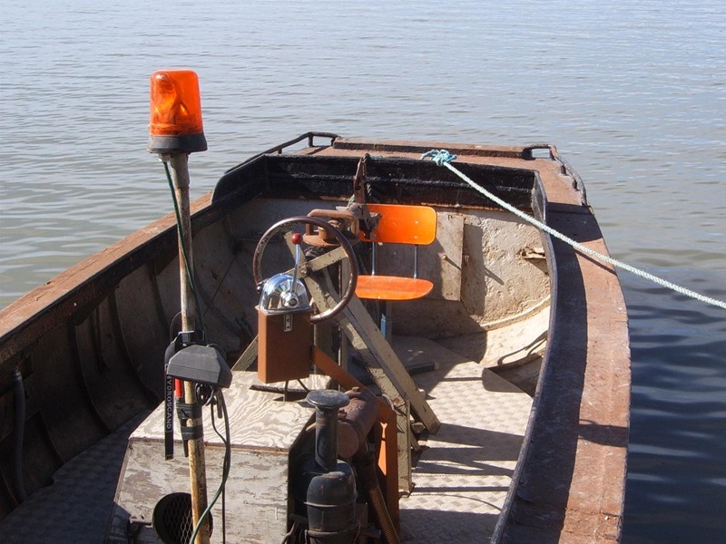 Första gången red såg denna båt var i Strängnäs vid Skanskas brobygge över Mälaren. Foto red. 1 maj 1980