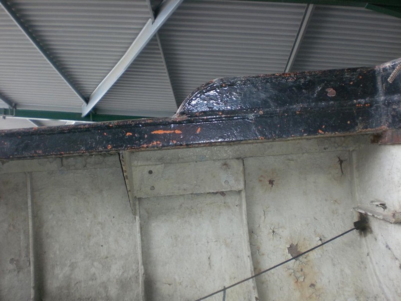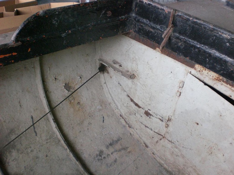 Mer detaljer på BVV-12 båt. Fästplåt för vertikal pollare. Det betyder att brädgången tillkommit efter att pollaren flyttats Foto red 2008-02-08.