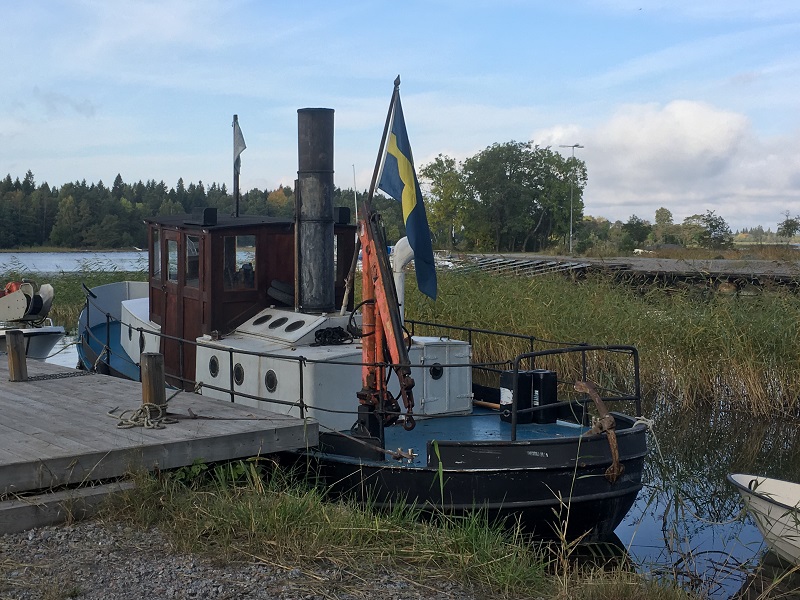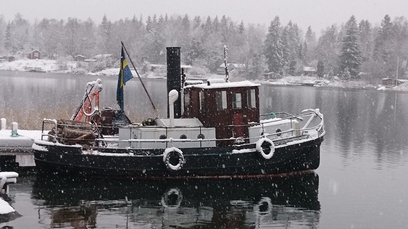 Arbetsbåt med ångdriven kran på akterdäck Foto Red 2017 09 26