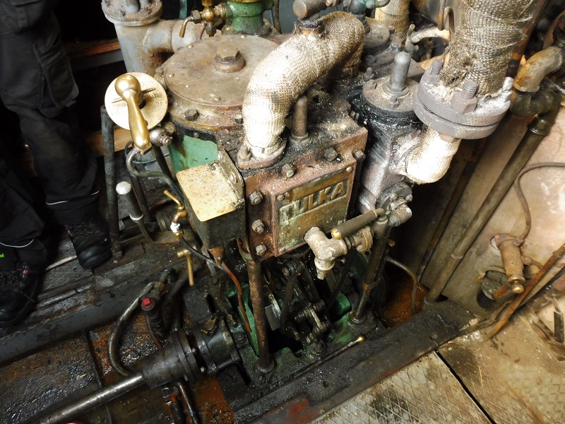 Johan som innehar det välrenomerade företaget Olssons Marin på Tulka norr om Hallstavik använder ibland båtens som arbetsbåt. Han har försett den med en ånghydraulisk kran. Maskinen utvecklar ca 18 ånghästar och dragkraften är uppmått till 350 Kg N