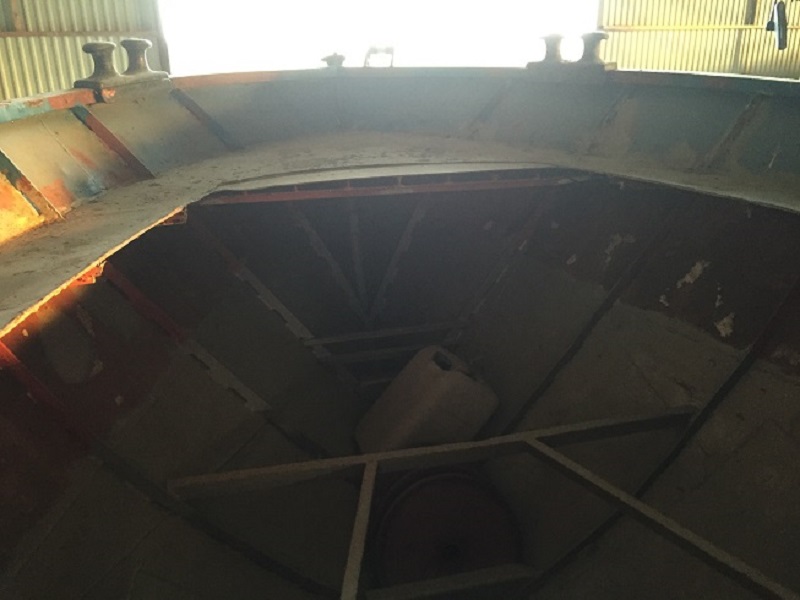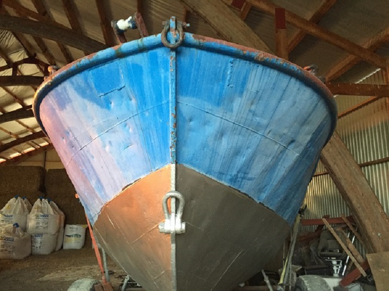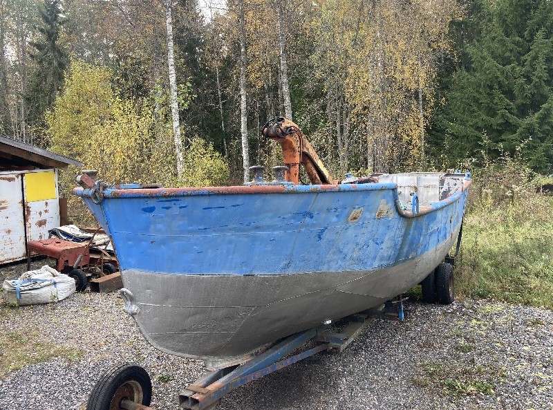 Historien är som följer; i slutet av 1970 talet köper Västerviks Dykklubb en båt av Södra Skogsägarna. Den är redan då ombyggd men används till att rangera flottgods vid en närbeläget sågverk. Som ni kan se på bilden av stäven är siffrorna nr 28 bortskurna och ersatta med en hel plåt. Det behöves säkert då båten gick i Östersjön. Dykklubben brukar båten flitigt men säljer runt 2000 båten till Uppsala och skaffar en plastbåt istället.