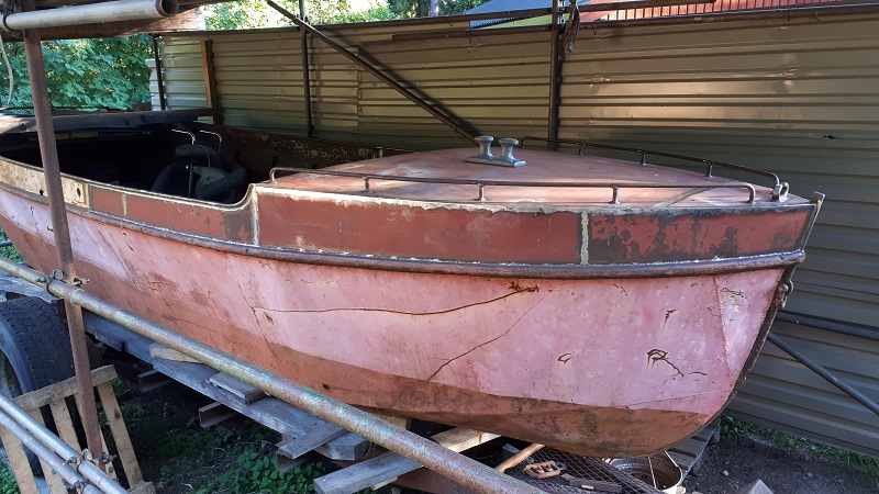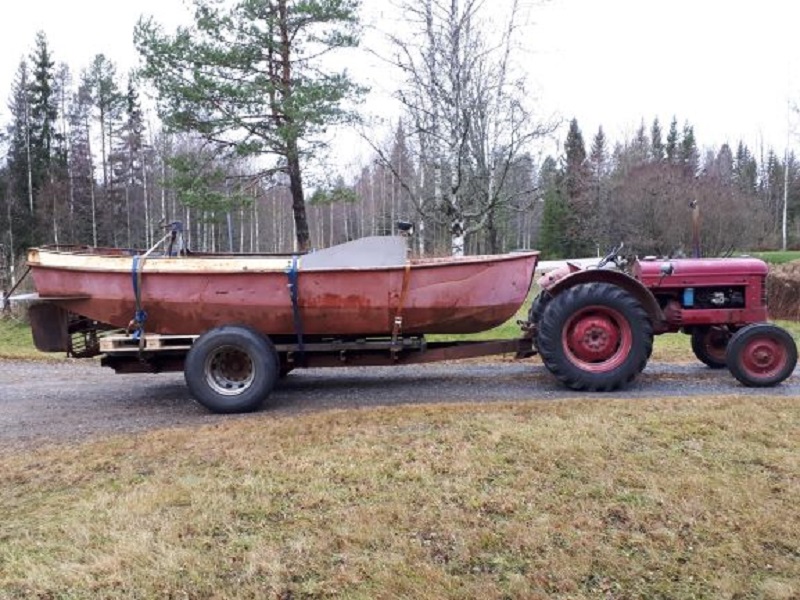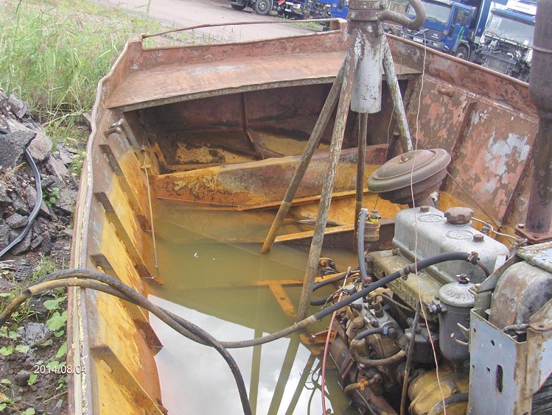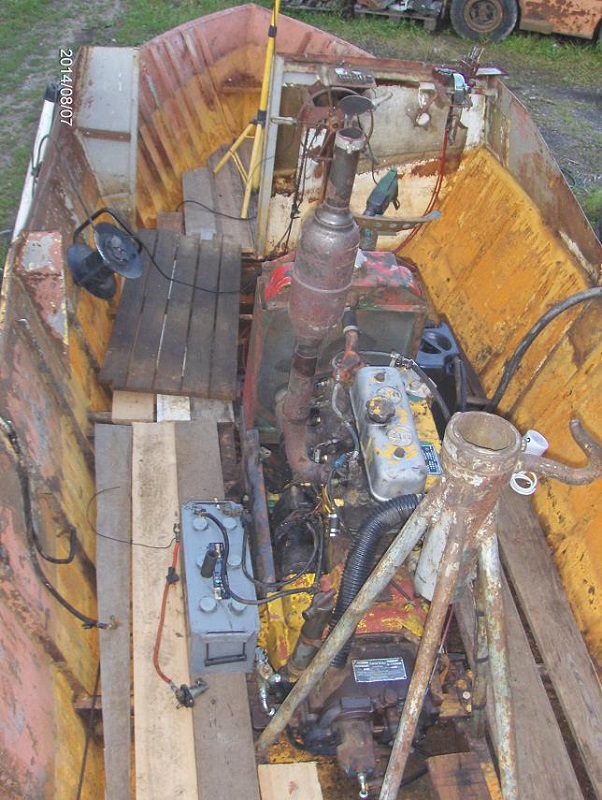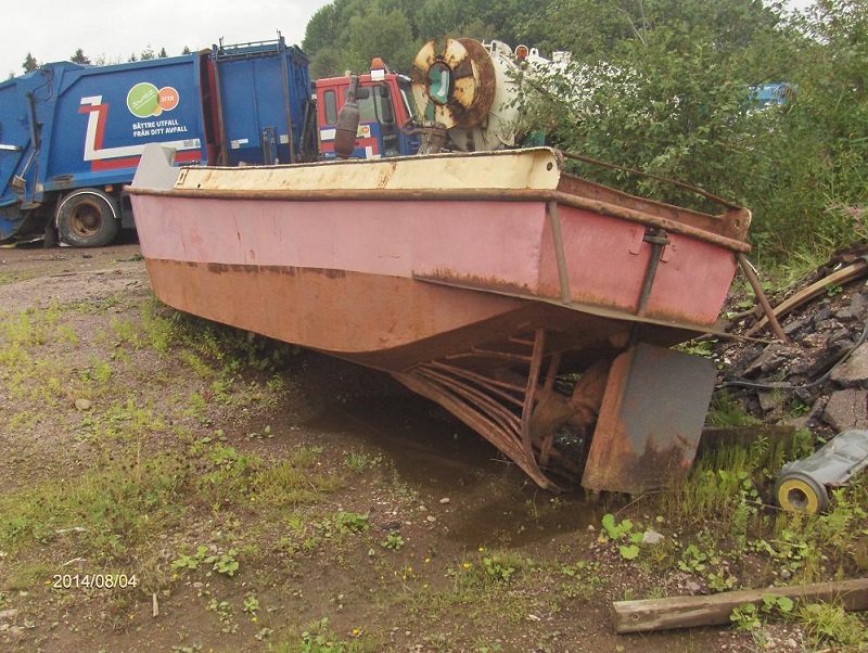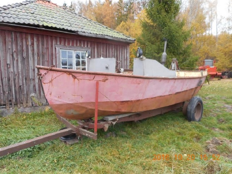 Båten vid inköpet. Denna motor var dock sönderfrusen på flera ställen varför ett motorbyte blev nödvändigt .