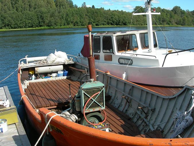 Båten transporterades troligtvis per bil. Bland anteckningarna står att den är vägd i travers varvid resultatet blev 3 500 kg. Bordläggningen är byggd i 5 mm plåt. Som ni ser på bilderna är stäven förstärkt med hjälpspant för gång i timmer eller is. Motorn har också kylare och fläkt istället för sjövattenkylning, också det funktionellt på vintern.