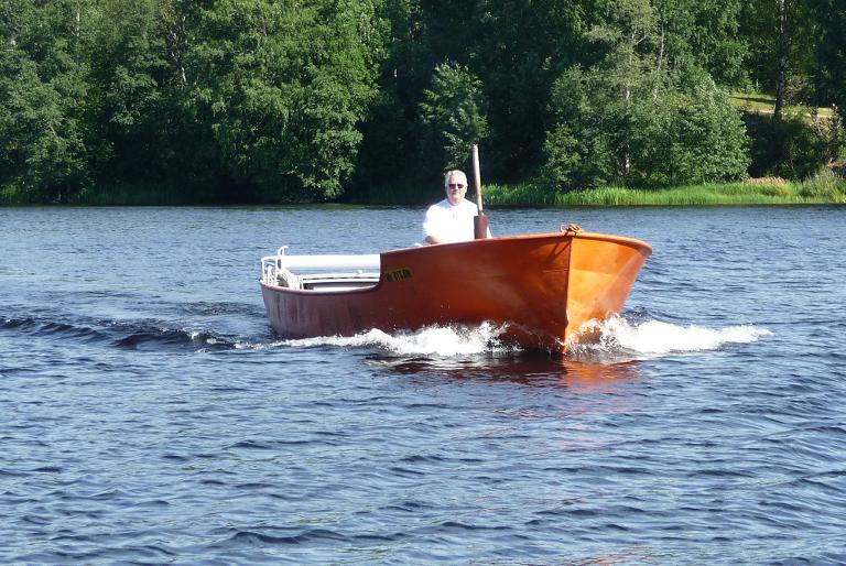 En ytterst nöjd redaktör fick befälet över Bysjön vid årets Varpbåtspaning, vilket gav stor mersmak. Foto red 2014 07 27