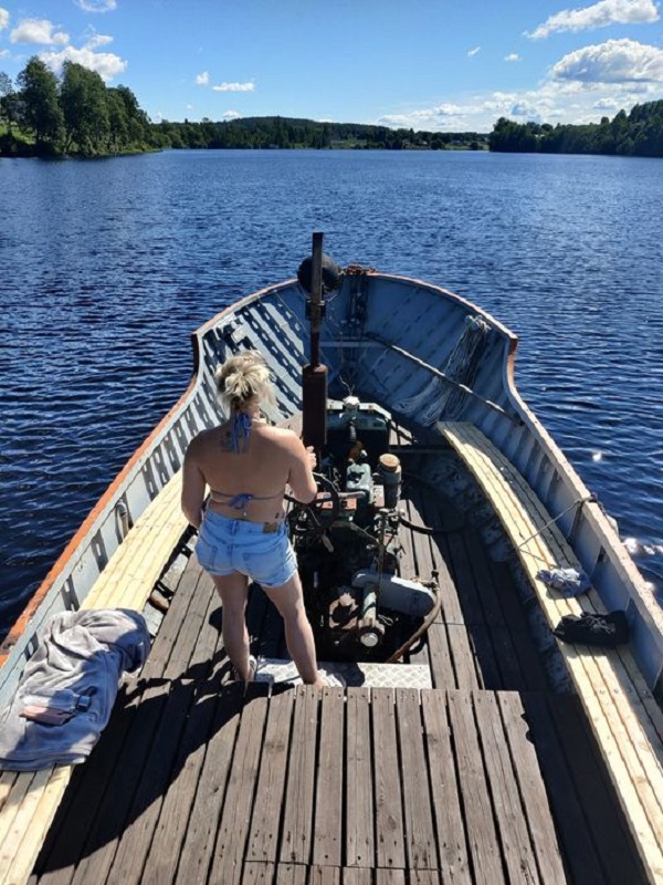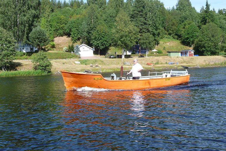 I nådens år 2021 fick båten en ny ägare. Per Gustafsson i Stora Skevi. där Bysjön fick ny hemmahamn. Samma älv som hon alltid gått pånedströms, men lite längre Foto Erik Gustafsson 2021 08 03