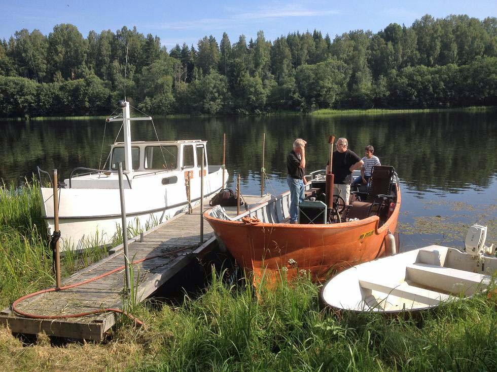 Dags för 2014 års varpbåtsspaning på Dalälven. Fr väster BVV 10 Nr 159 Otto och nr 349 Bysjön. Foto red 2014 07 27