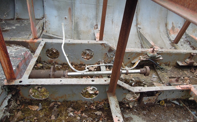 Innombords där motorn har stått. Den senaste mjukt upphängd. Ett tränat spanaröga kan se brytblocken till styrningen till originalhytten.Foto Sören Mård 2025 03 25