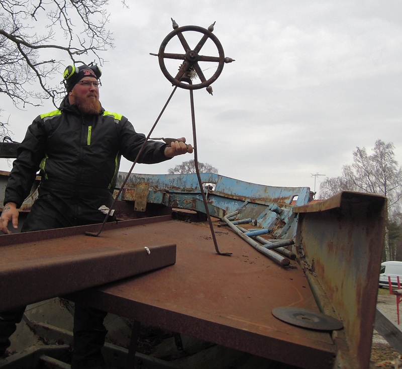 Nuvarande ägaren Andreas Hammerin visade upp en typisk Lidwallsratt.Intentionen var att båten skulle renoveras under 2025. Foto Sören Mård 2025 03 25