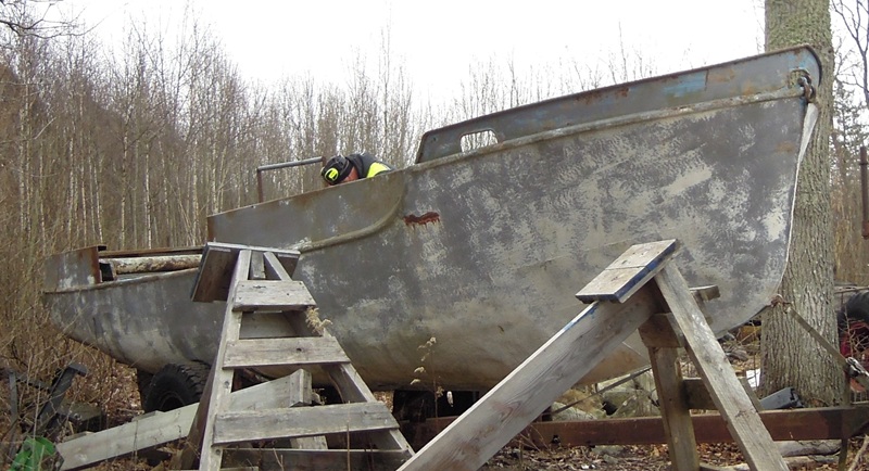 rivning av den rostiga originalhytten och diverse plåtbyten i
