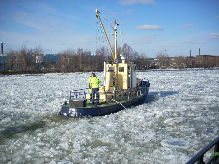 Fyren på Göta älv Den gamla timmerdragaren agerar isbrytare. Foto Bengt Sandinge. 2011 02 22
