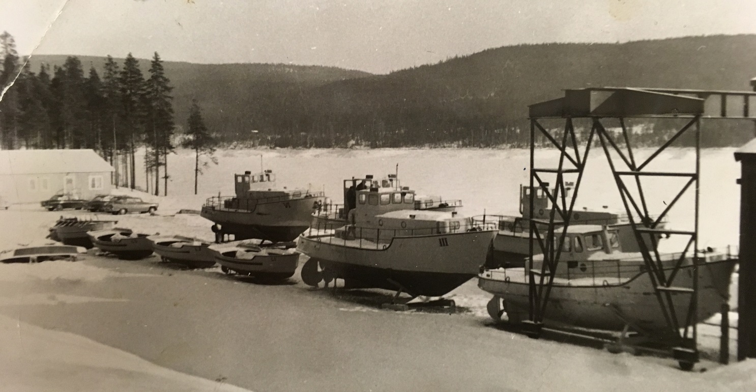 Trängslet III vid den depå som skapades för flottningsbåtarna vid dammen. Foto Bernt Fogelberg 1966 08 31 i Lidwalls sidans samling.