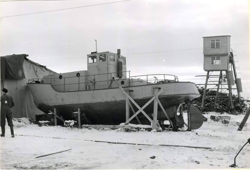 På vedgården vid Kvarnsvedens Pappersbruk i Borlänge. Stora som ägde både båten och bruket tog ned Trängslet III för att brukas henne som isbrytare och därmed få en jämnare tillförsel av massaveden som sjöförvarades. Experimentet slog inte väl ut och båten sändes åter till Trängsletdammen. Håkan Larsson stod för identifieringen av båten då denna har ett avvikande utseende på rutorna akterut i styrhytten jämfört med den tre systerbåtarna. Foto från nätet genom Kvarnsvedens hembygdsförening ca 1963