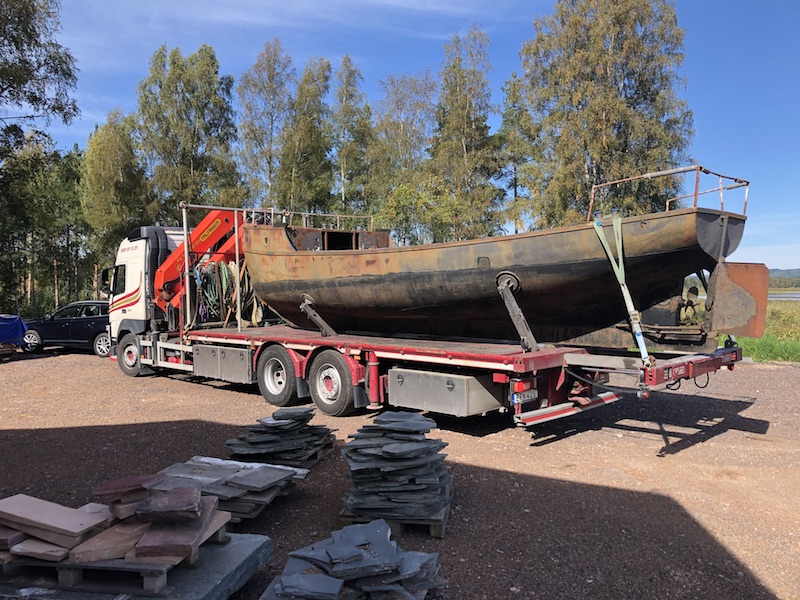 Levererad till Leksand. Red lät sig imponeras över Tomberg Transports grejor men inte minst av det linjesköna skrovet hos 70+:aren Foto red 2021 08 31