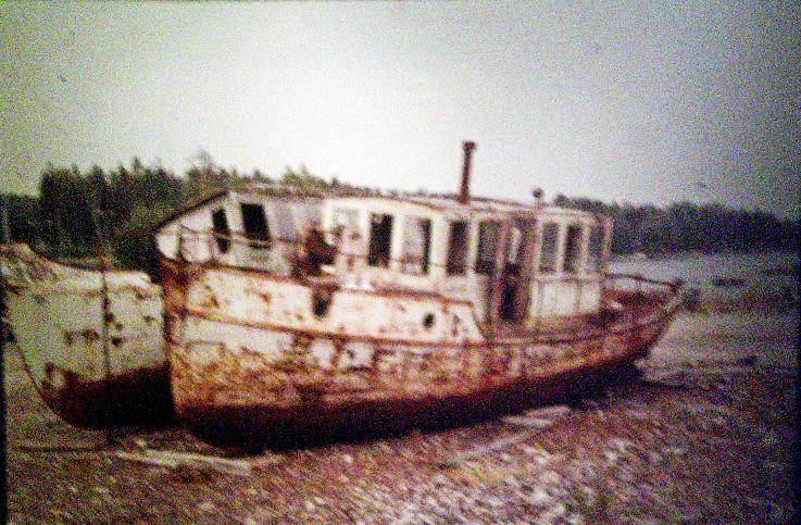 Barken upplagd vid Vad utanför Fagersta sommaren 1972 Innanför ligger BV 17 Nr 7Väsman Foto Claes Sandberg 1972