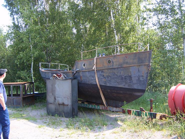 Den kommande hytten. Extra köl och rodret förstorat. Foto red i Falun 2006