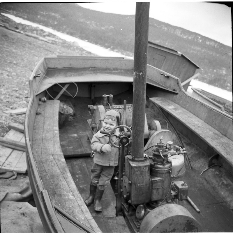 Den äldsta bilden vi har av någon av BVV-10 båtarna L1, L2 eller L3 - oklart vilken - på Trängsletsjön, samt ytterligare en som skymtar i bakgrunden. Sefflemotor med plåtskydd över svänghjulet kan vara ett spår. Foto Konrad Kettis 1962 genom sonen Anders Kettis som vid tillfället styrde upp det hela.