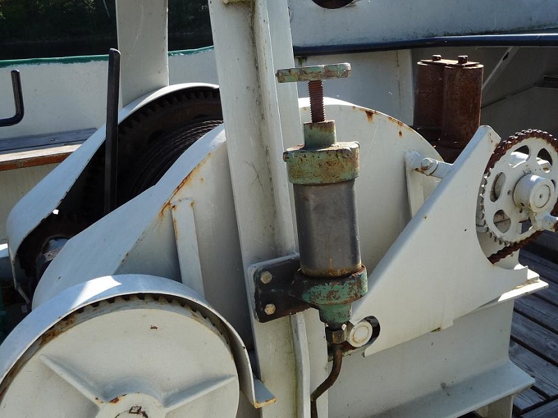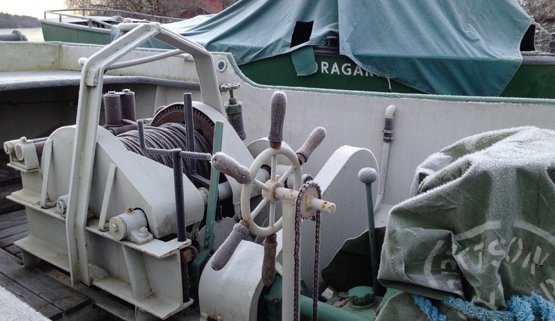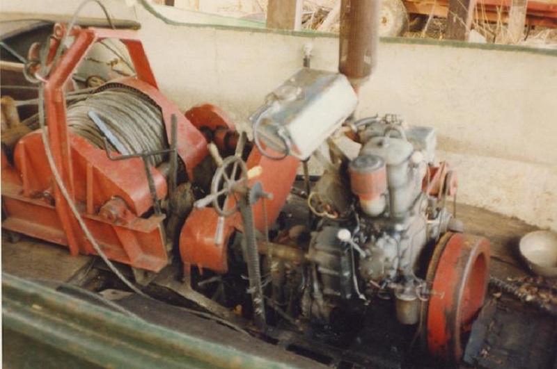 Varparen 21 i Råda 1991. Detalj av motorn och spelet Foto Håkan