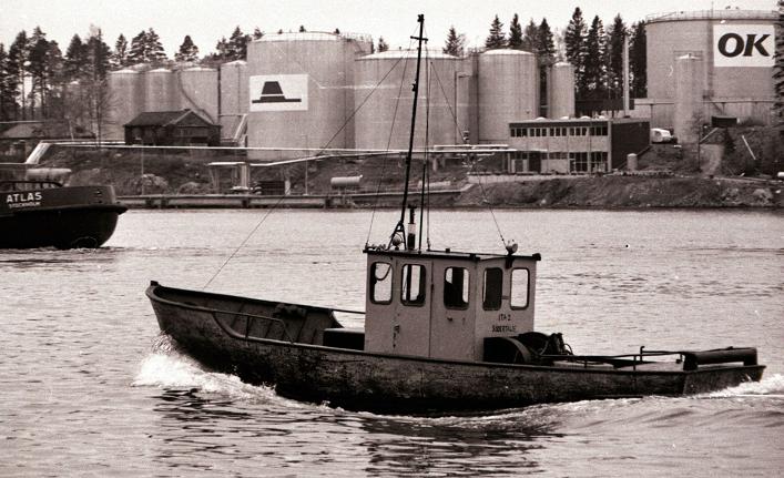 Ita II i full fart Södertälje oljehamn i bakgrunden. foto Christer Samuelsson 1970 01 24