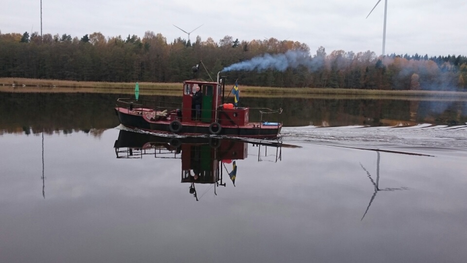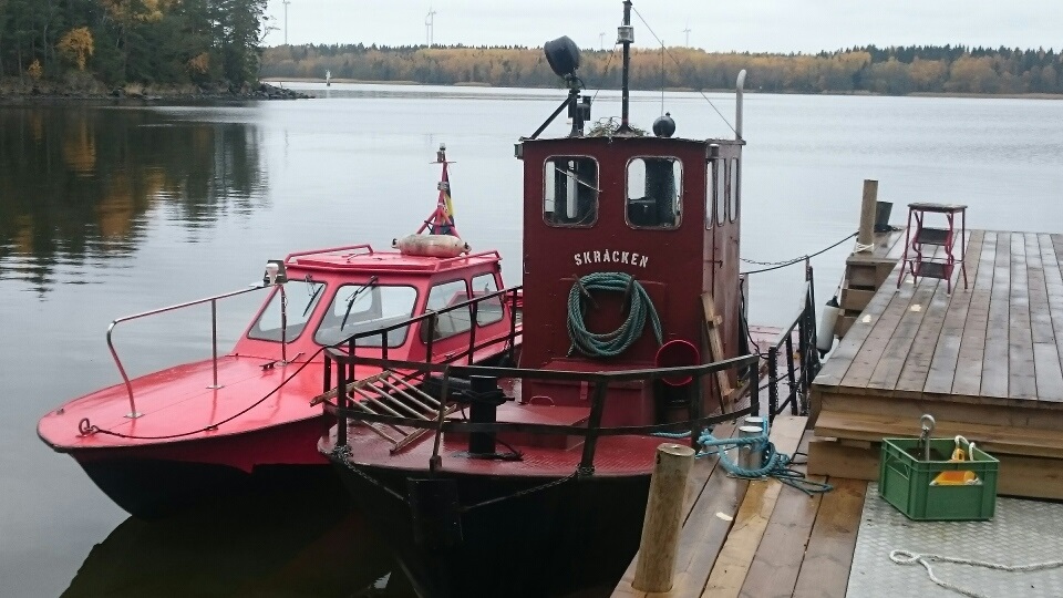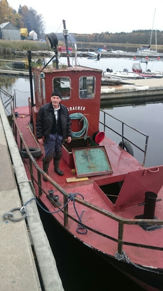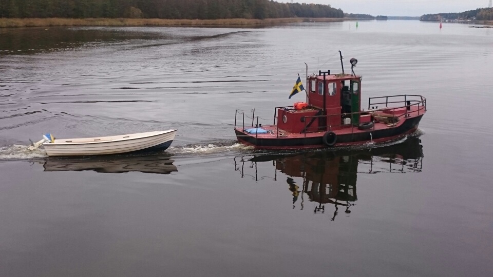 Efter ca 20 år på land i Roslagen är ITA II nuvarande Skräcken iordningställd och åter i fart. Som ni ser har hon redan fått sitt första bogseruppdrag. Foto Sven Olsson 2016 10 15