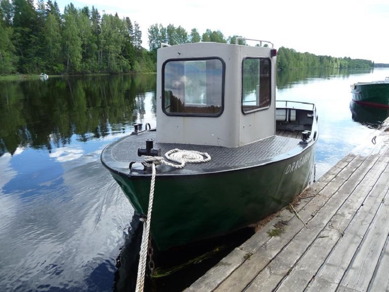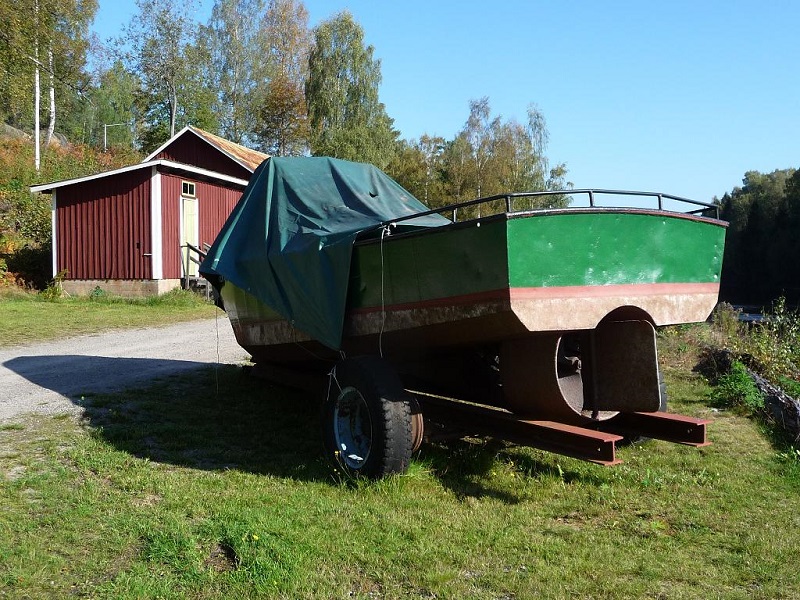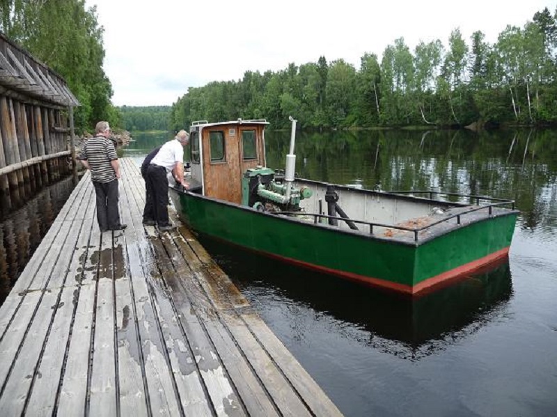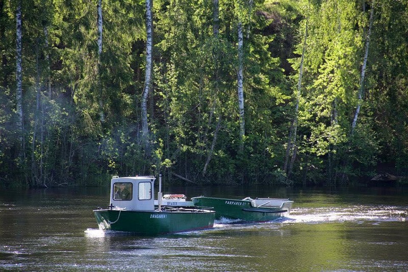 Dragaren 1 vid flottningsmuseet i Dyvelsten under 2011 års varpbåtsspaning. Foto Red2011 07 07