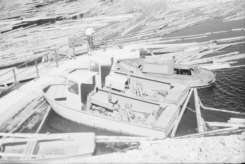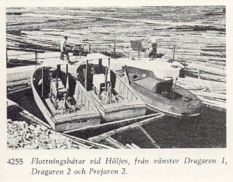Dragaren 1 Dragaren 2 och Prejaren 2 i Höjles dammen. Foto flottningsinspektorn Hjalmar Franzén 1963 genom Magnus Blix.
