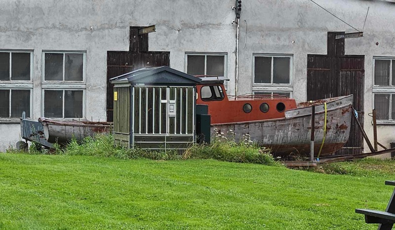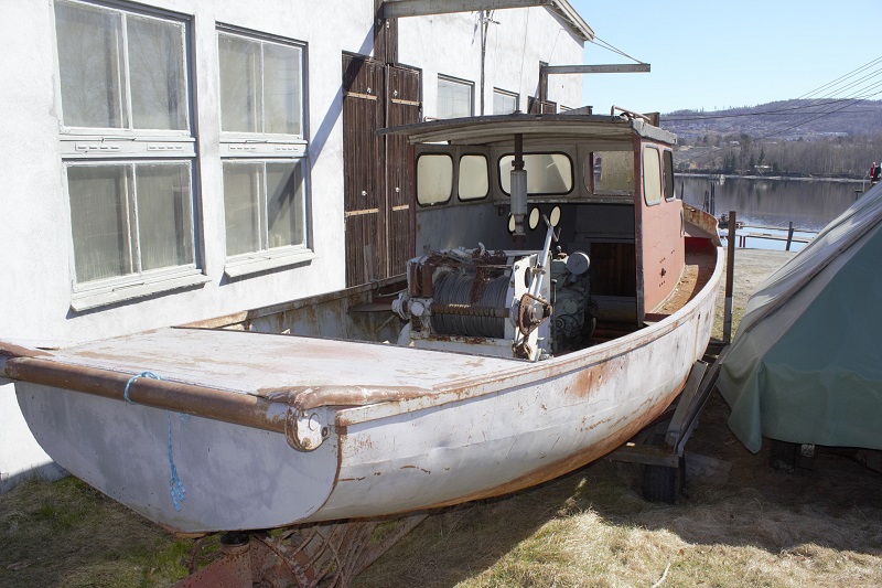 Här ligger båten på land och väntar på upprustning som vi hoppas inte ligger allt för långt framåt i tiden.