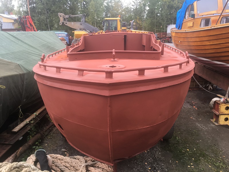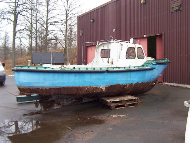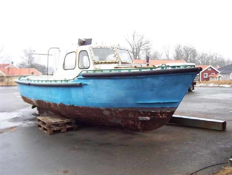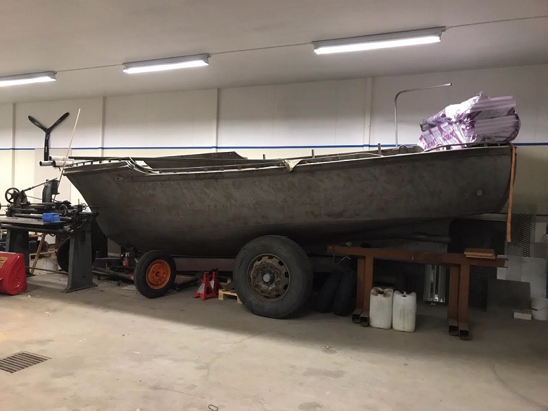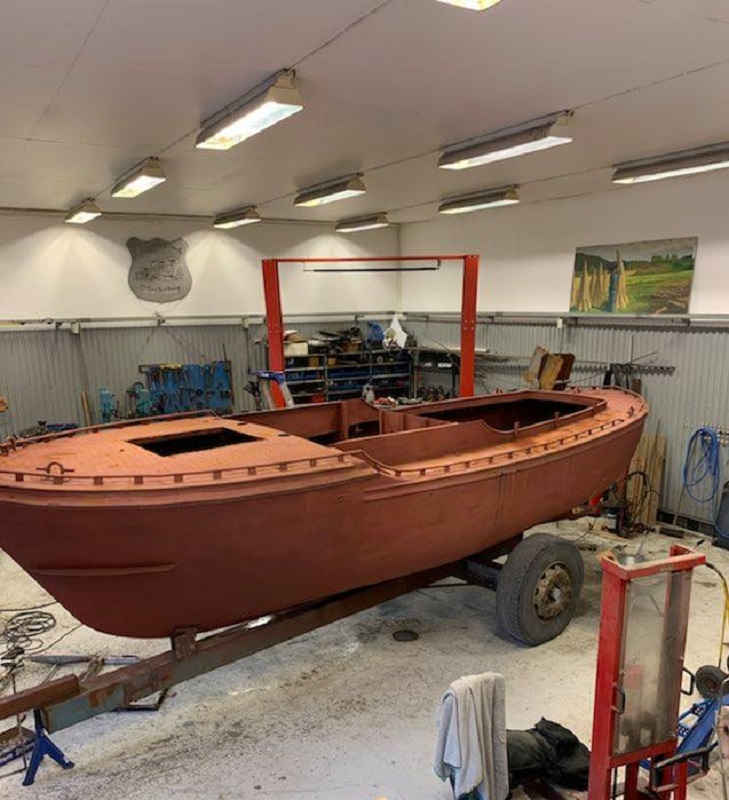 I juni 2021 köpte Ola Pettersson, Borlänge båten. Han började med att laga hålet i aktern, köpa en tillverkningsskylt och en Lidwallsvimpel. En utomordentlig start ett intressant projekt. Planen var att han skulle ha henne i sjön till våren 2022. Foto Ola Pettersson 2021 08 04