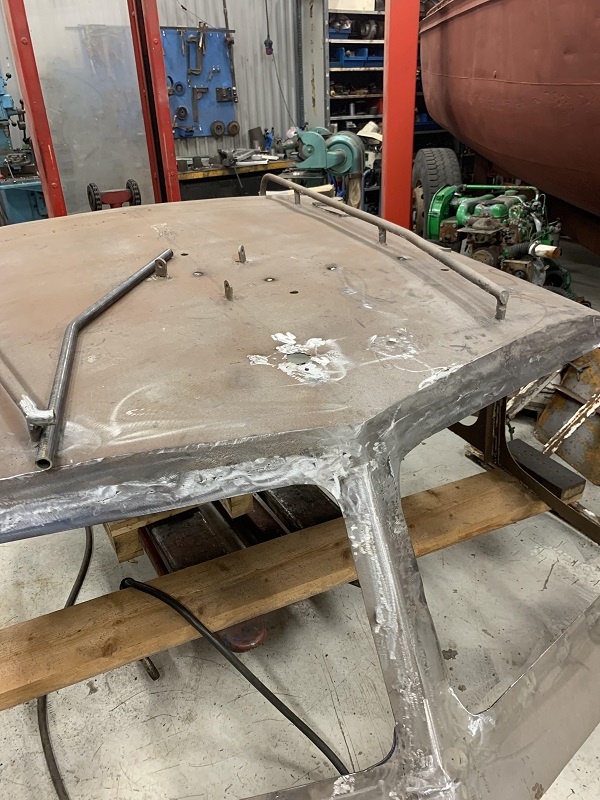 Det gick framåt. Här har hytten kommit in i värmen och de blivande rutramarna har återställts och reparerats. Foto Ola Pettersson 2021 11 09