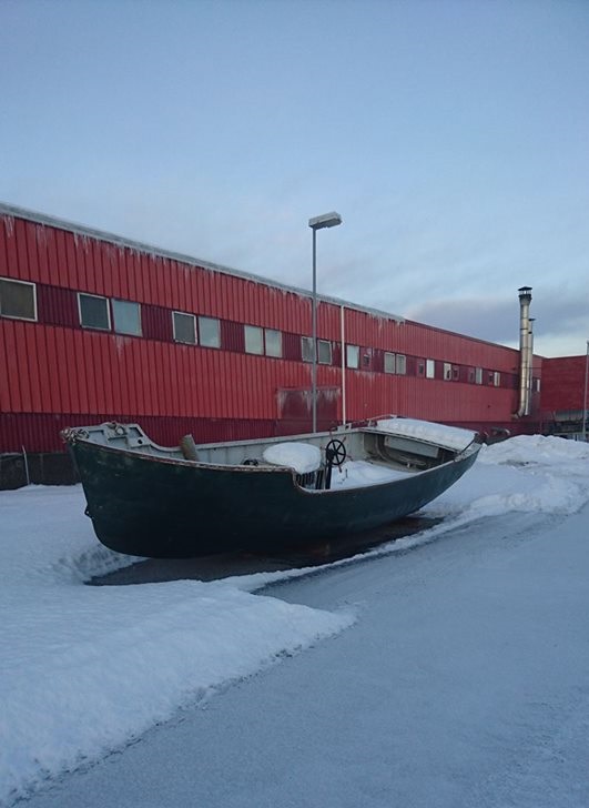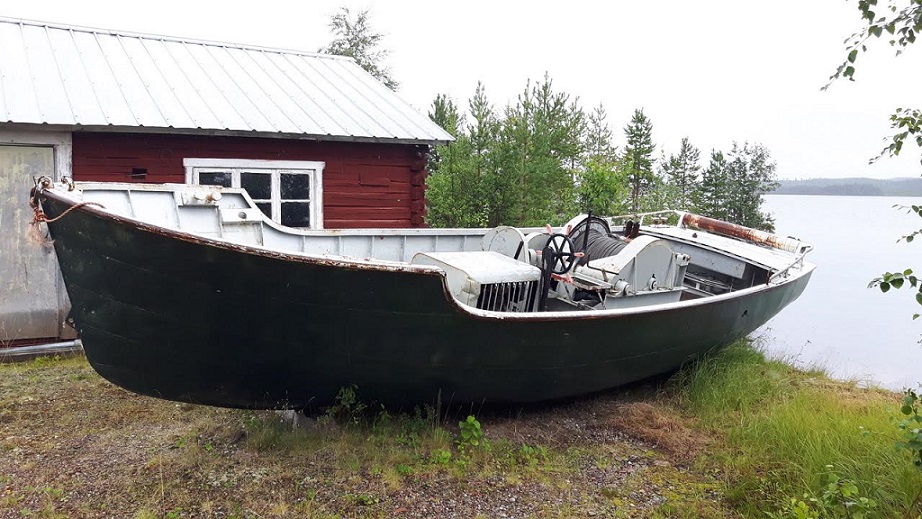 Båten har enligt rykte gått i Porsi (5 mil nedströms Jokkmokk i Luleälven där vi bor) och har sedan legat på land strax utanför Jokkmokk i ett antal år.