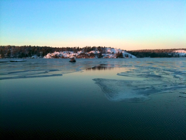 Tjoff är inte den enda Lidwallsbåten som är ute och stånkar i Stockholmsisarna denna vinter med tidig isläggning. Foto Martin R. 2010-12-10.