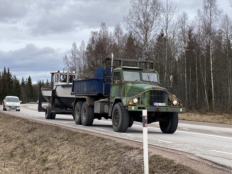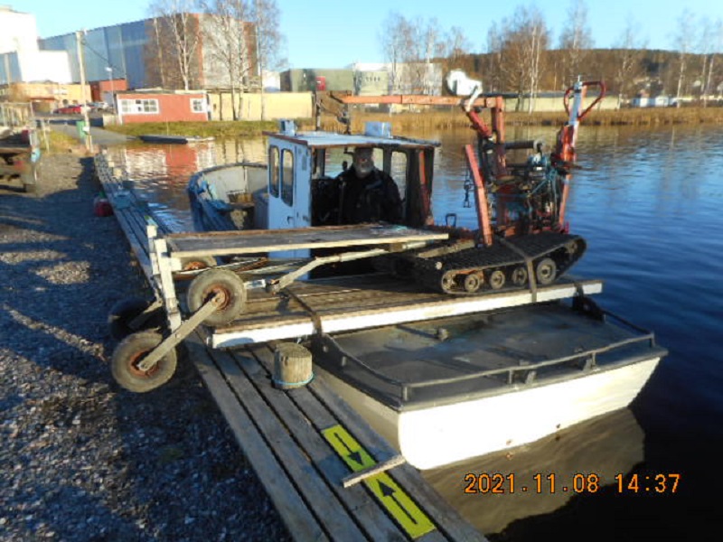 Transport av skogsmaskin till Lövön där avverkning skall utföras. Foto Lars Hansson 2021 11 08